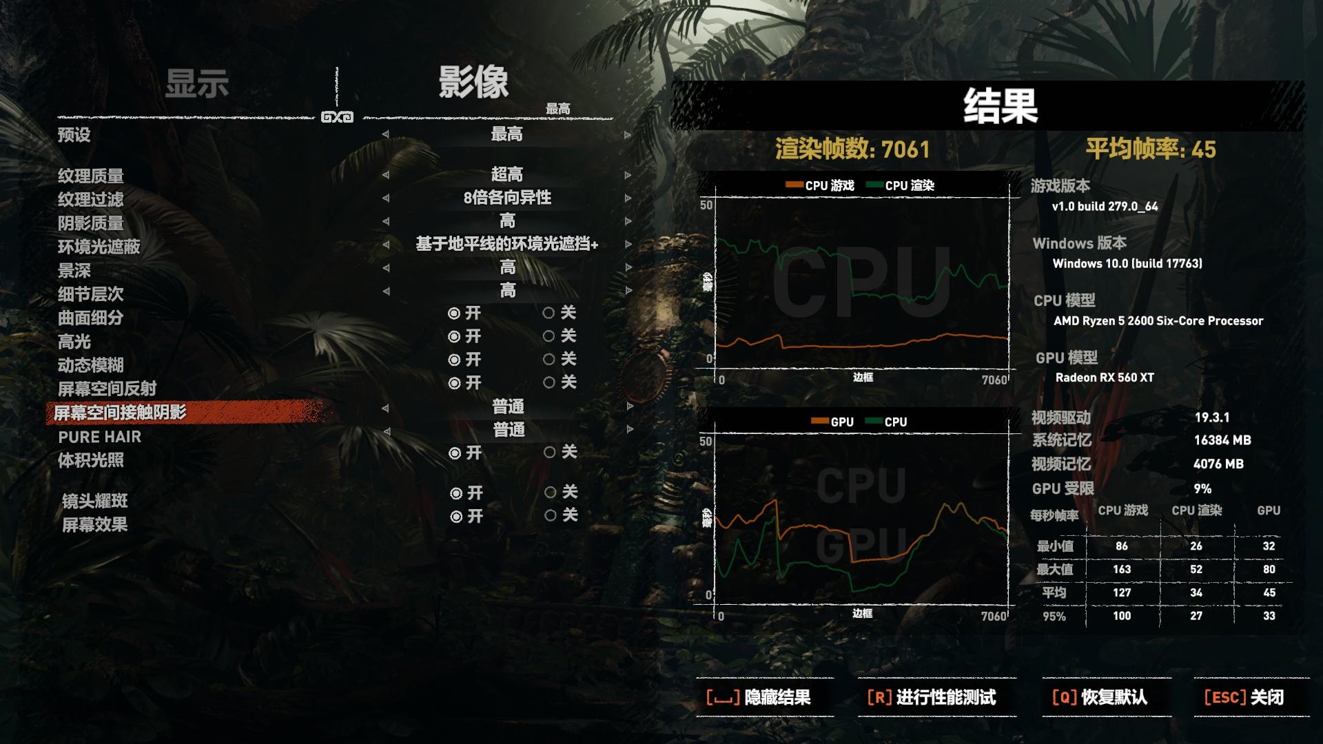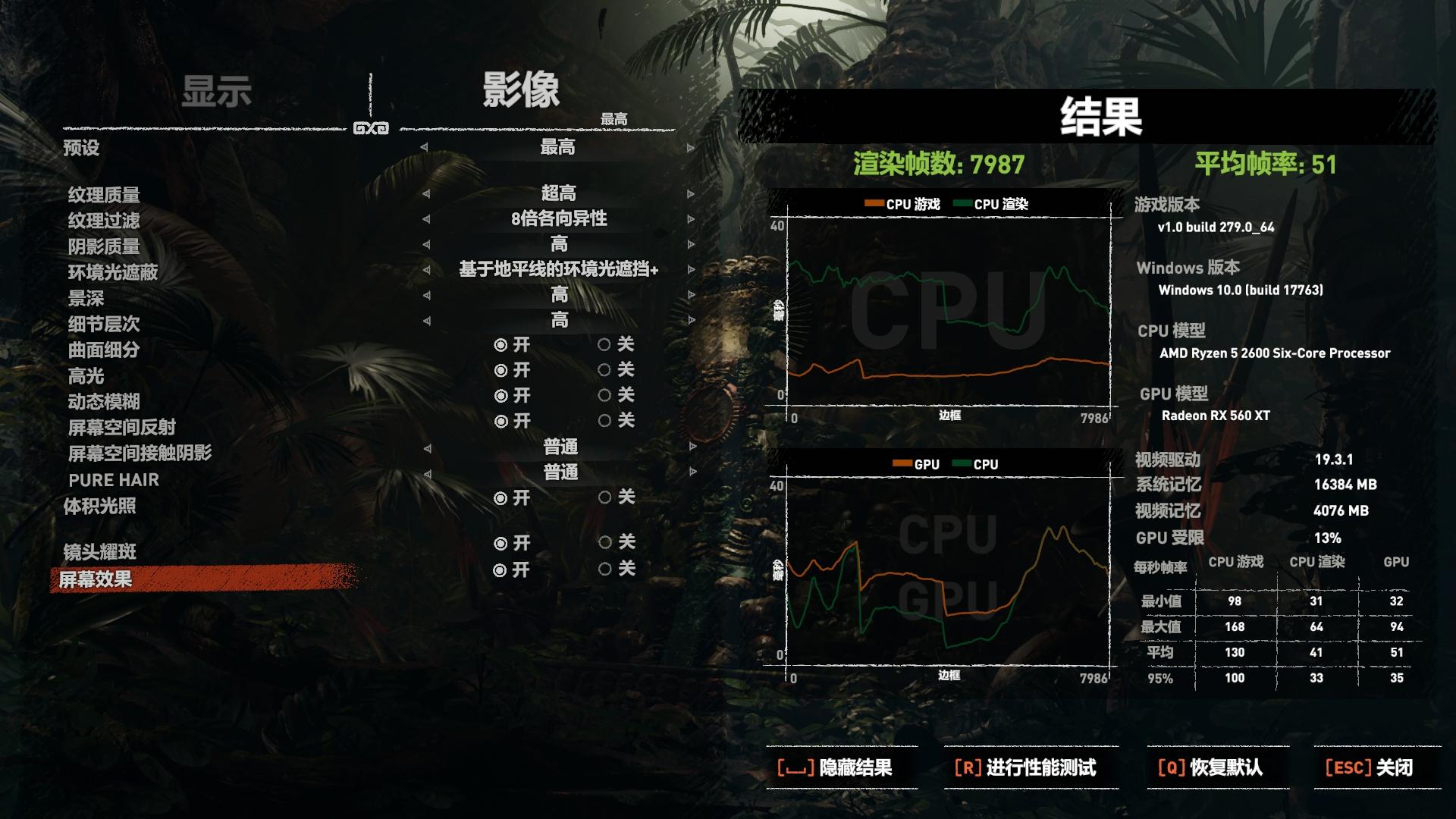 蓝宝石RX 560XT 白金版 平均帧数59fps,最低帧数45fps