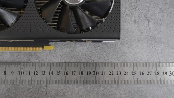 显卡长度实测度量在230mm左右,上官网一看RX 580 2048SP白金版 OC也是一模一样的长度。