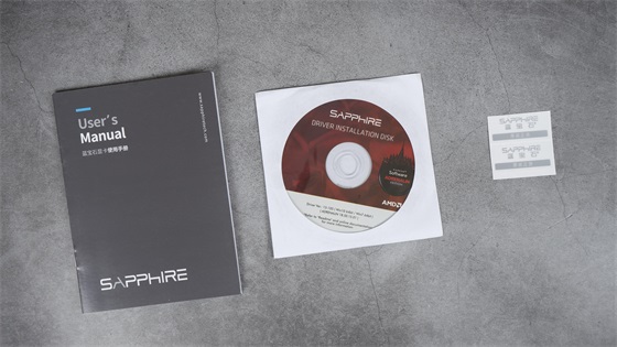 先看附件,简配一套使用手册、驱动光盘和蓝宝石贴纸,光盘驱动程序版本是18.50.15.01,也就是Adrenalin 2025 Edition 19.1.2那个版本,记得这是两个月前左右就有的,这就可能意味着560XT那时候已经诞生了。