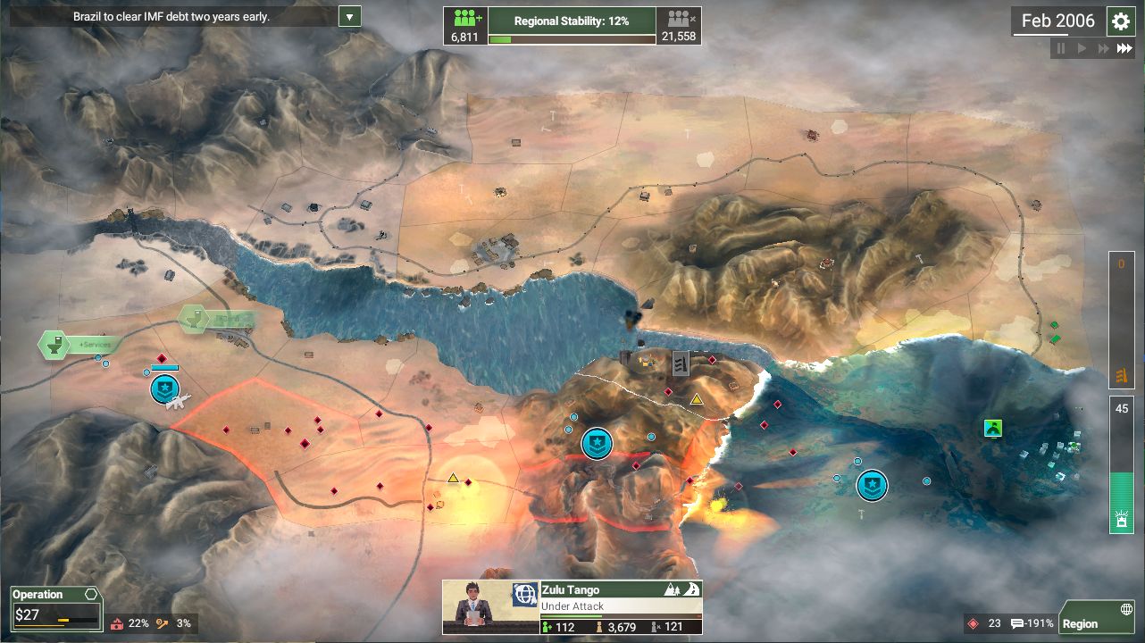 《反叛公司》 是一款策略模拟游戏。玩家将体验维和行动,策略的派出多国联合军和国民军,平定区域间的叛乱。正确投资民生项目,巩固区域的统治。更有多位治理者及场景地图。