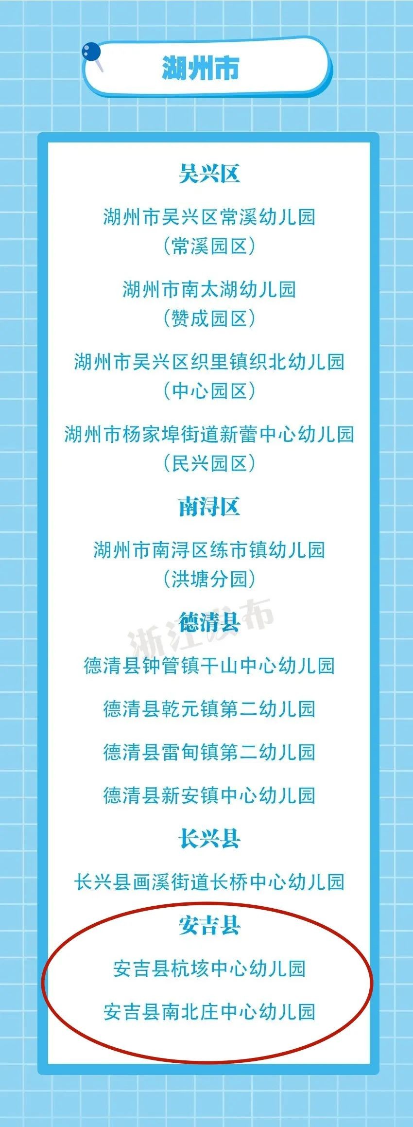 近日,省教育厅发布2024年浙江省一级幼儿园拟认定结果公示,拟认定杭州市凯旋华家池幼儿园等260所幼儿园为浙江省一级幼儿园。安吉县有两所幼儿园入选,名单如下↓↓