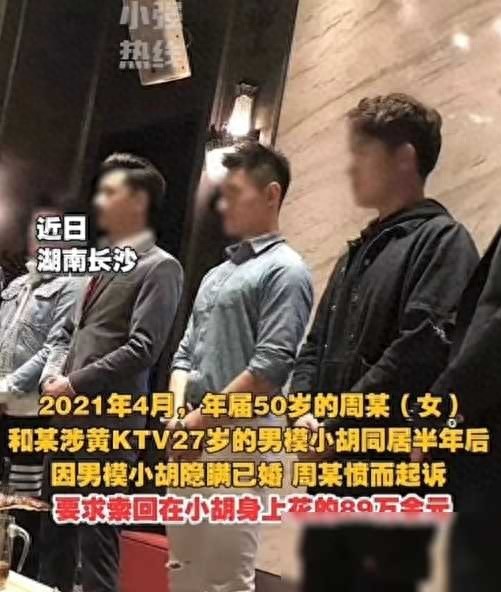 湖南长沙,50岁富婆周女士在KTV唱歌时,遇到年轻帅气的27岁男公关小胡,二人发生关系后,周女士赞赏其魅力,并开始包养他。半年内花费高达89万元。然而,当周女士发现小胡已有婚姻,立刻愤怒并要求偿还费用。