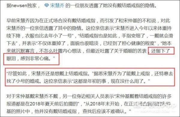 她的朋友也爆料说她体重持续下降,衣服都比去年小了一号。她还常常以泪洗面、脸色暗淡,已经开始担心健康问题。