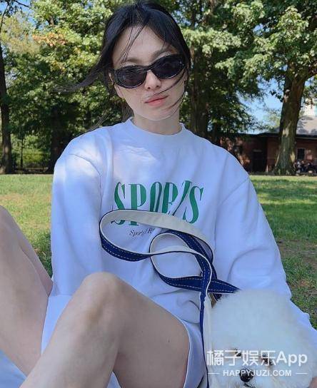 这时的她身着一件白色卫衣,穿着休闲短裤,随意的马尾辫绑在后面。用帆布袋装着Ruby,超级惬意!