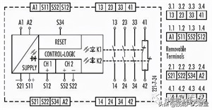 我们以某安全继电器为例,其内部控制电路如下图所示: