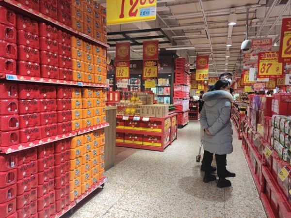 在济南一大型超市,白酒专区正在搞促销活动:过道上摆放着打折促销的白酒产品,一堆堆酒箱子堆起来,像一座座小山。每每有顾客驻足,都有促销人员上前推销。