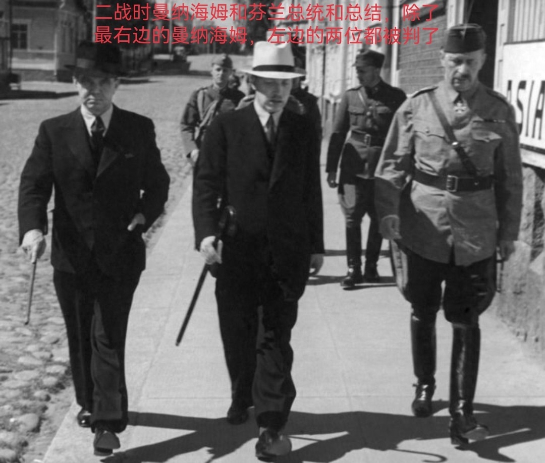 有意思的是二战结束后战时的芬兰总统里斯托·吕蒂、总理埃德温·林科米斯、财政部长瓦伊诺·坦纳等很多人,都在苏联的要求下被判有罪,只有曼纳海姆虽然被苏联媒体口伐笔诛了很久,却并没有被定罪。