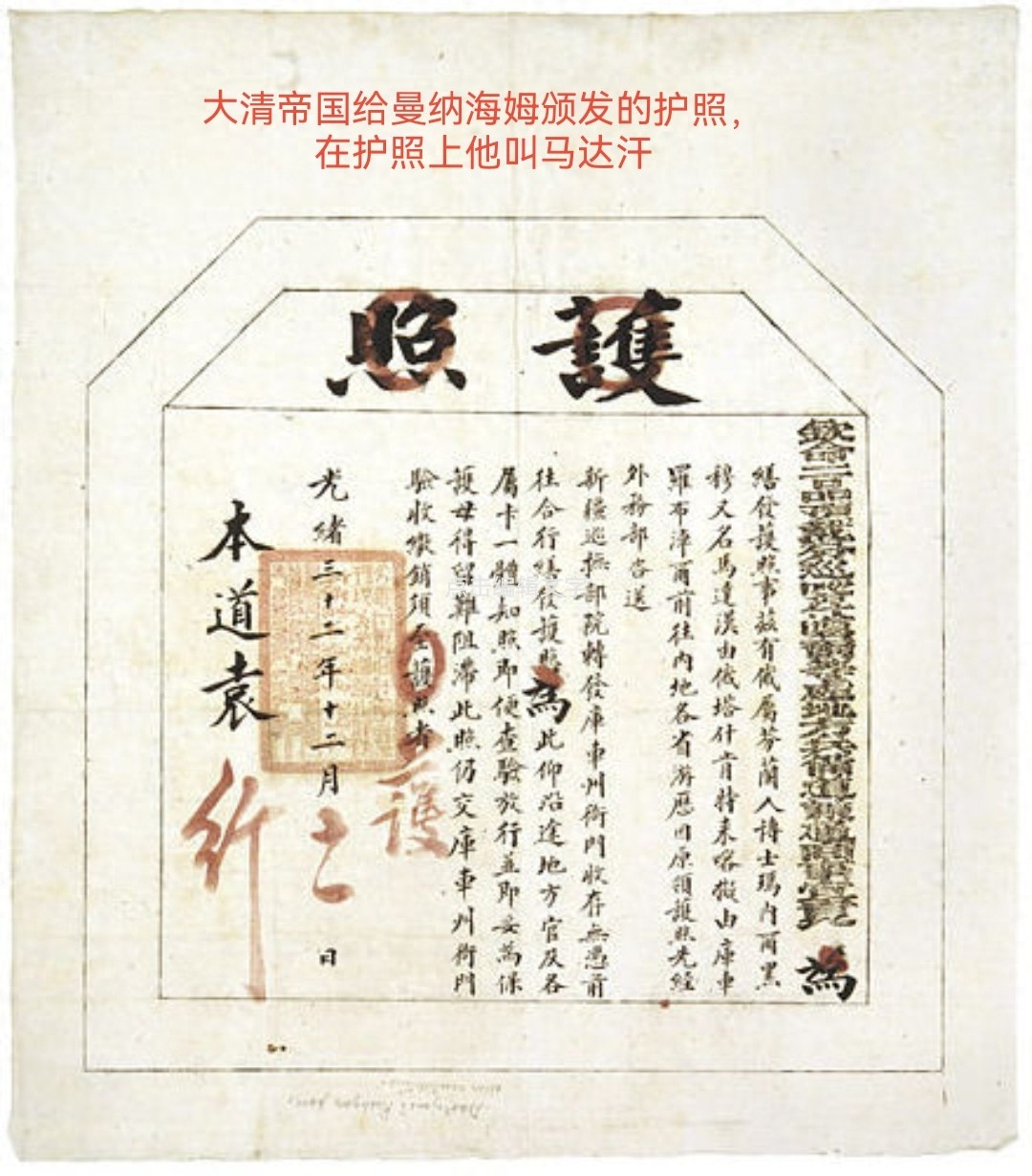 在这份护照中,俄国领事给曼纳海姆安排的身份是俄属芬兰博士马内尔黑穆,中文名为马达汉。