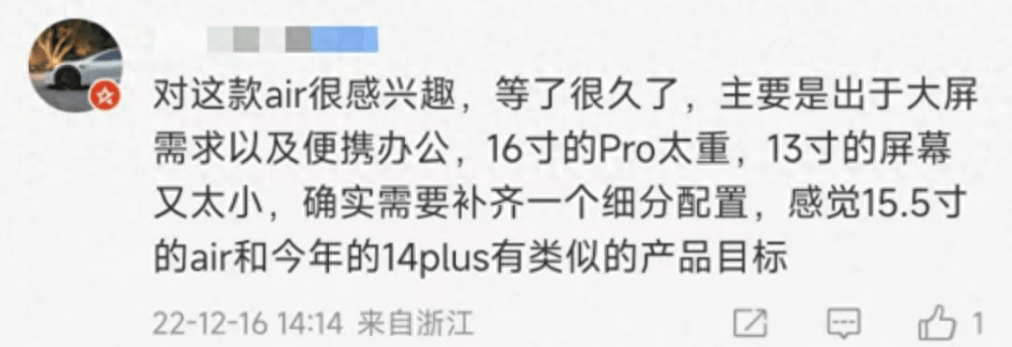 还有网友建议在13英寸和16英寸间,中和个15英寸的MacBook Air出来,所以…这不就来了吗!你准备好掏钱包了吗?