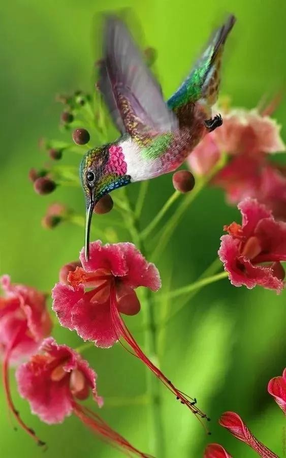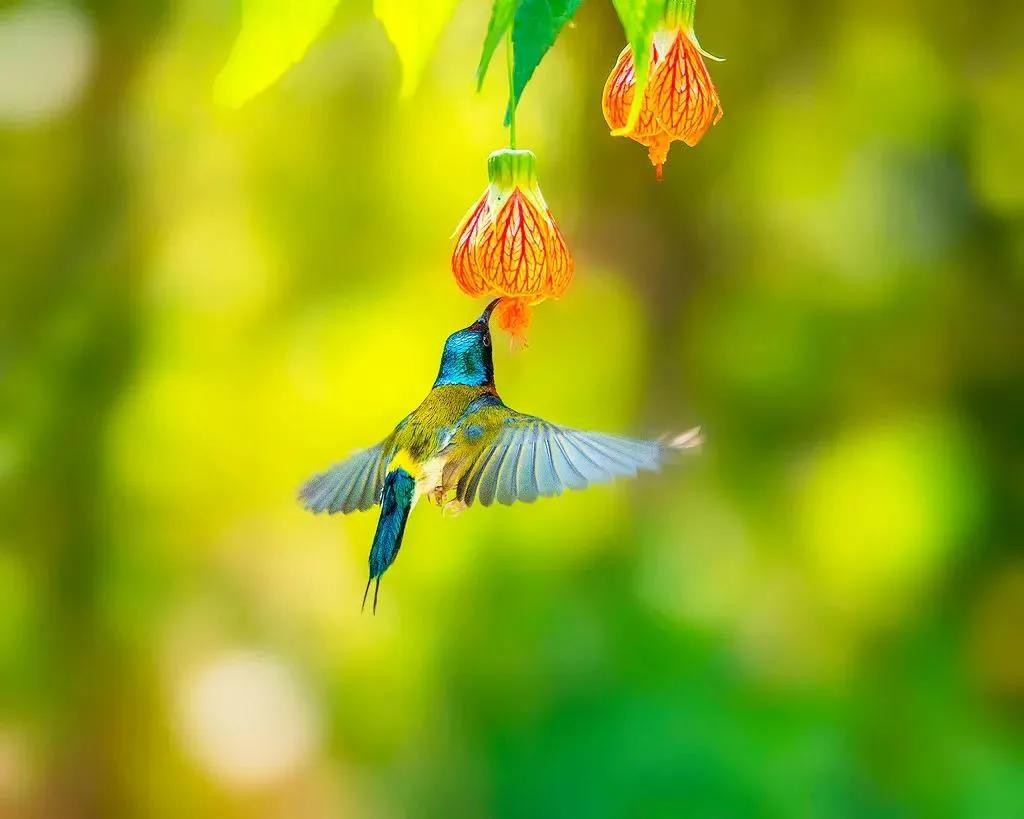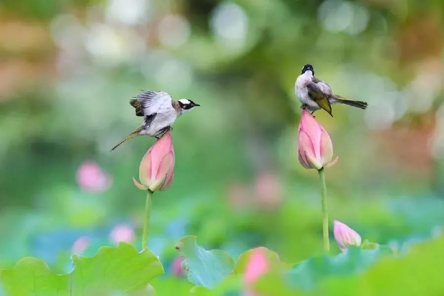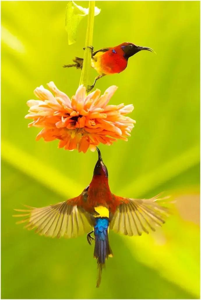鸟儿灵动可爱,花儿鲜艳美丽,花与鸟的组合就是天下最美的图画。