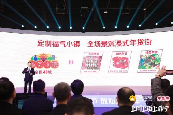 苏宁此次年货节带来怎样的新玩法?侯恩龙透露,苏宁多产业联合在全国推出消费新场景——福气小镇。在南京、北京、上海、杭州、广州等全国43座福气小镇里,土洋年货聚集,结合不同的场景和年货需求,为用户挑选最好的年货,堪称升级版的年货大集。