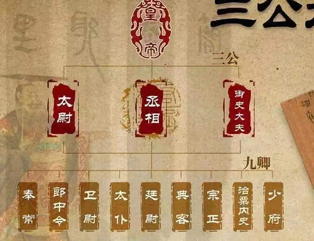 秦朝初立三公九卿制度,其中三公为丞相、太尉、御史大夫;九卿为奉常、郎中令、卫尉、太仆、廷尉、典客、宗正、治粟内史、少府。