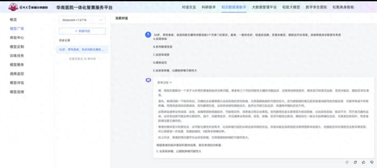 基于DeepSeek-R1的深圳大学附属华南医院一体化智算服务平台可支持三种参数的模型切换。医院供图