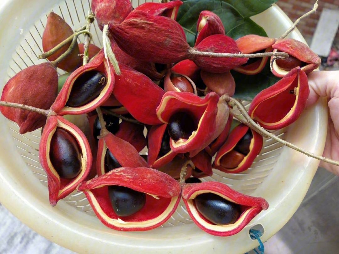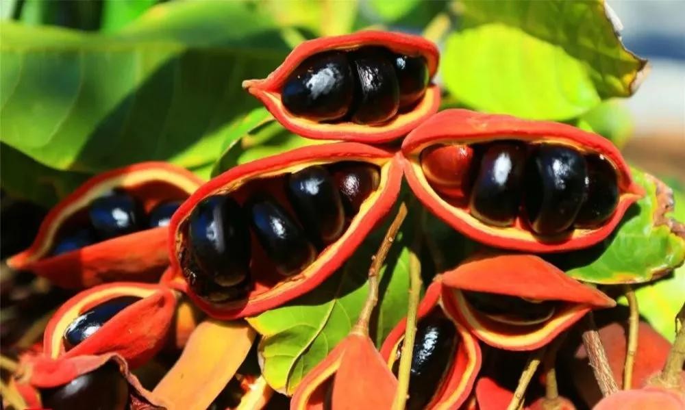 种子椭圆形或矩圆形,黑褐色,直径1.5公分左右;果实成熟裂开像凤眼,是“凤眼果”名字的由来。