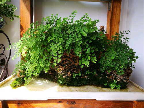 第一,观赏用。铁线蕨是栽培最普遍的蕨类植物之一,它的株形小巧,形态优美,茎叶秀丽,四季青翠,经久不落,非常适合小盆栽培和点缀山石盆景,它浅绿色薄质叶片搭配黑色光亮的叶柄,显得格外优雅。