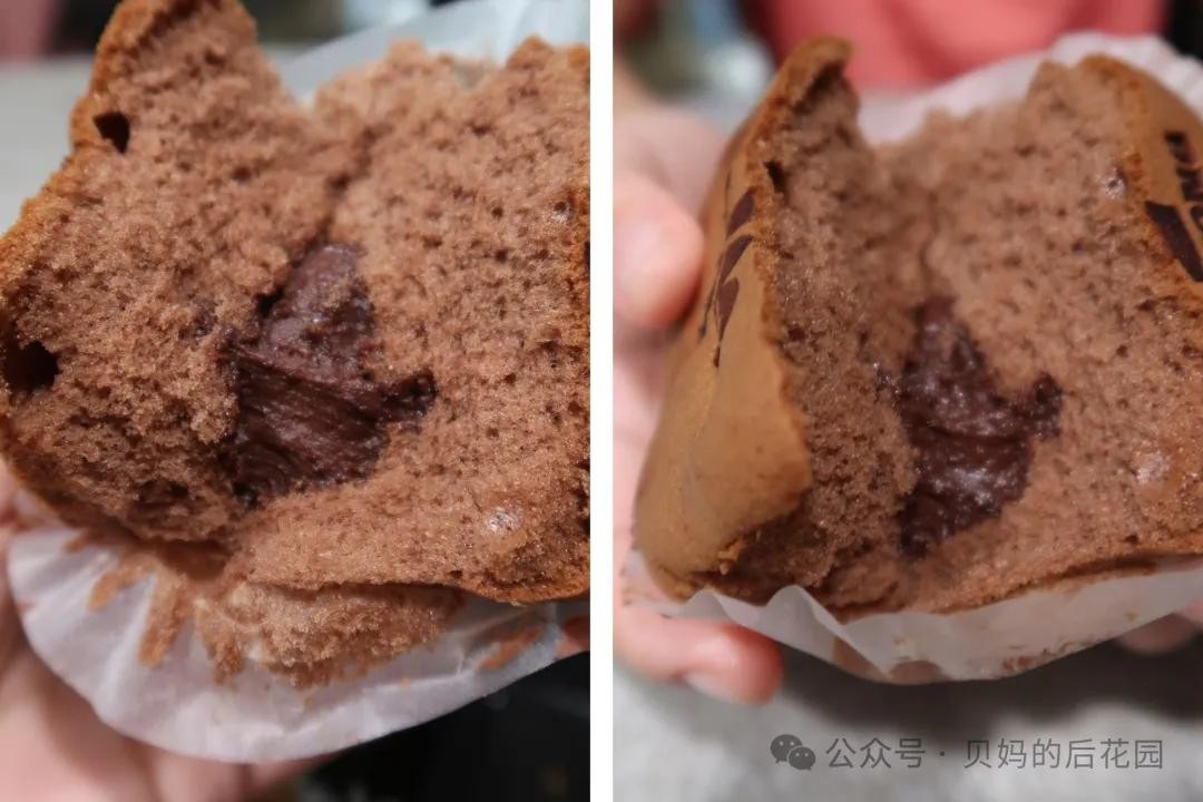 蓬松的黑巧蛋糕胚体,黑巧味浓郁,吃起来也不噎。中间是巧克力流心,相当丝滑!如果只是单吃流心,有点偏甜。配着黑巧蛋糕体一起“服用”,甜苦综合一下,反倒刚好!就连被甜月饼伤透了的我,都还是一口气吃了俩。