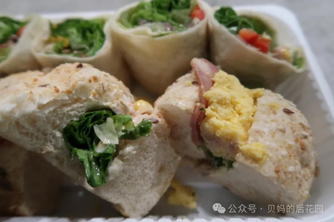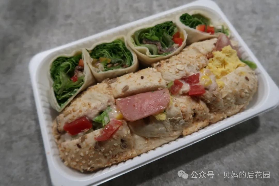 强烈推荐这款三明治!营养又好吃!一盒有『蔬菜卷饼』和『谷物面包』两种拼配。