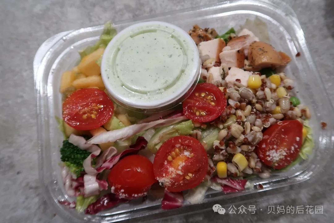 这个沙拉适合不想吃有大份主食的同学。