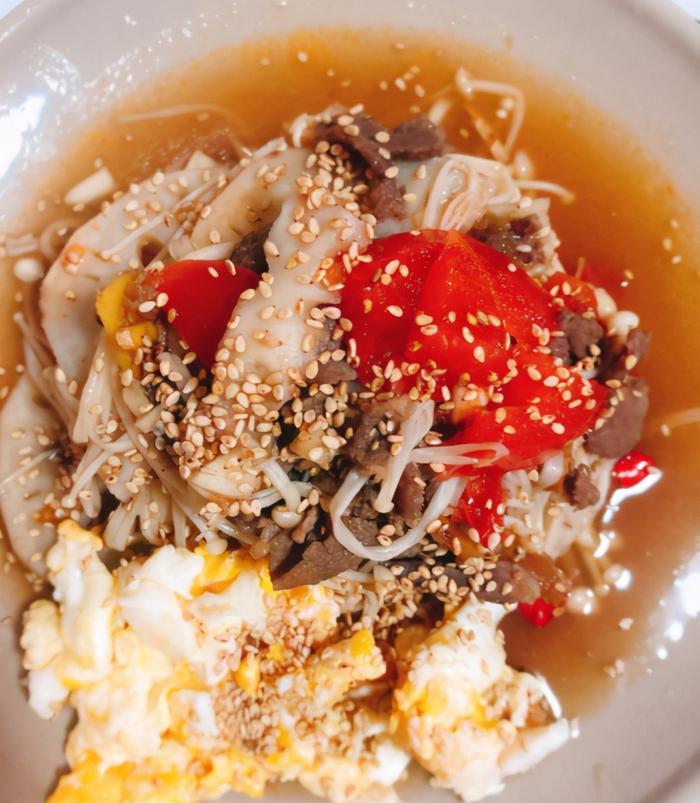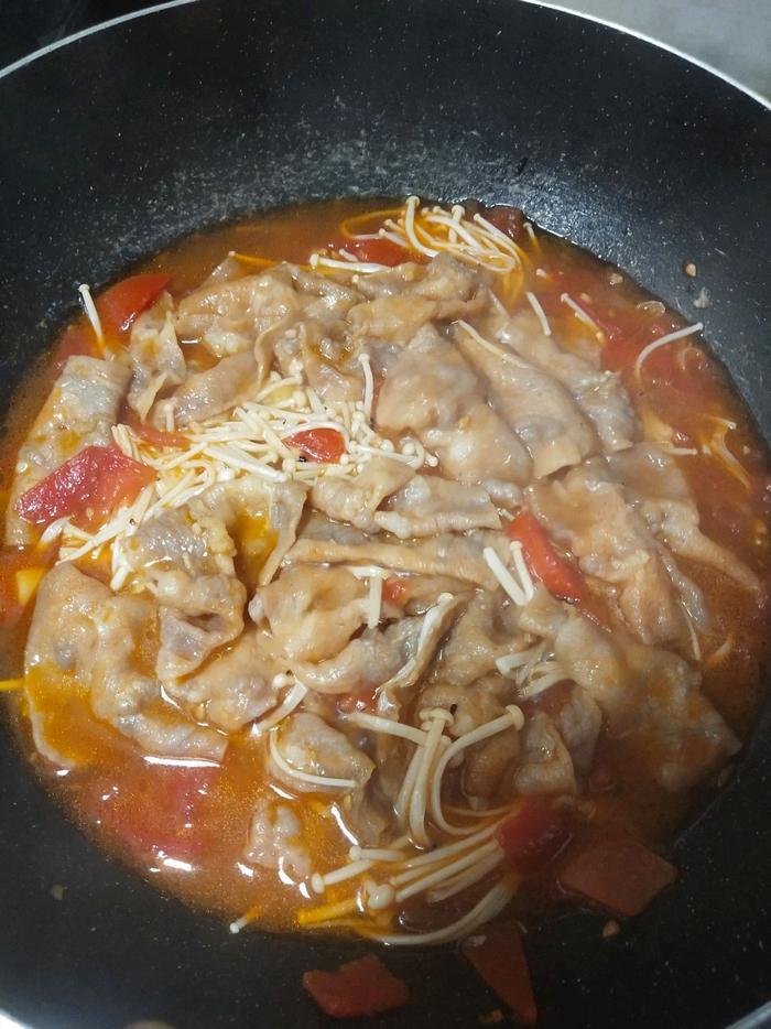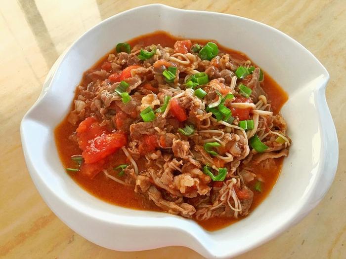 番茄肥牛金针菇汤:味道浓郁,清淡不腻,口感酸酸的,超好喝!