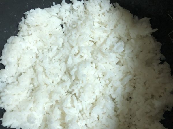 米饭放到温热不能烫手,微微比手暖一些就可以了。用勺子打散。
