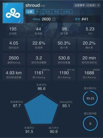 退役之后shroud全身心投入到直播当中(相信大部分鸡友都是从这里认识大魔王的),开始了本人PUBG的重生涯。从最初连路都不会有的小白到如今四处追人杀石头上蹦迪,已然成为玩家心中的传奇。尤其是他找人的才能可谓人形外挂,看看数据就晓得北美真香王的称号不是白给的!