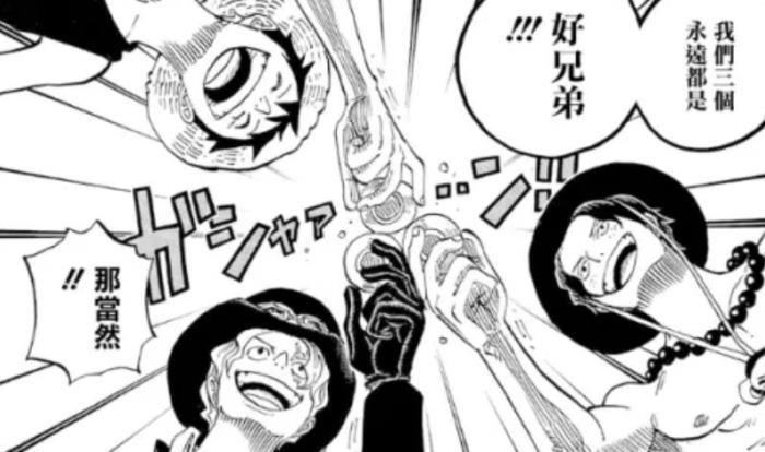 三人从顶上战争逃出来之后,就一起聚餐了,这个画面仿佛定格在20年前,兄弟三人再度举起酒杯,一饮而下。三人愉快地继续闯荡海贼世界,各有各的使命,然后各奔前程。这样的结果,真的是感人泪目了,只是这个画面不会再有了。