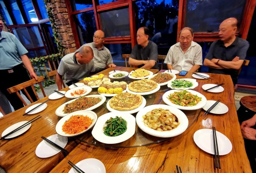 崇尚文化的洛阳张总,已在半山腰的云嶺酒店备下客家土菜,全部出自自产,虽无山珍,但味道极好,席间无酒,使我们一行,终于“在洛阳吃了餐饱饭”(因为连日大酒,少食主食)!
