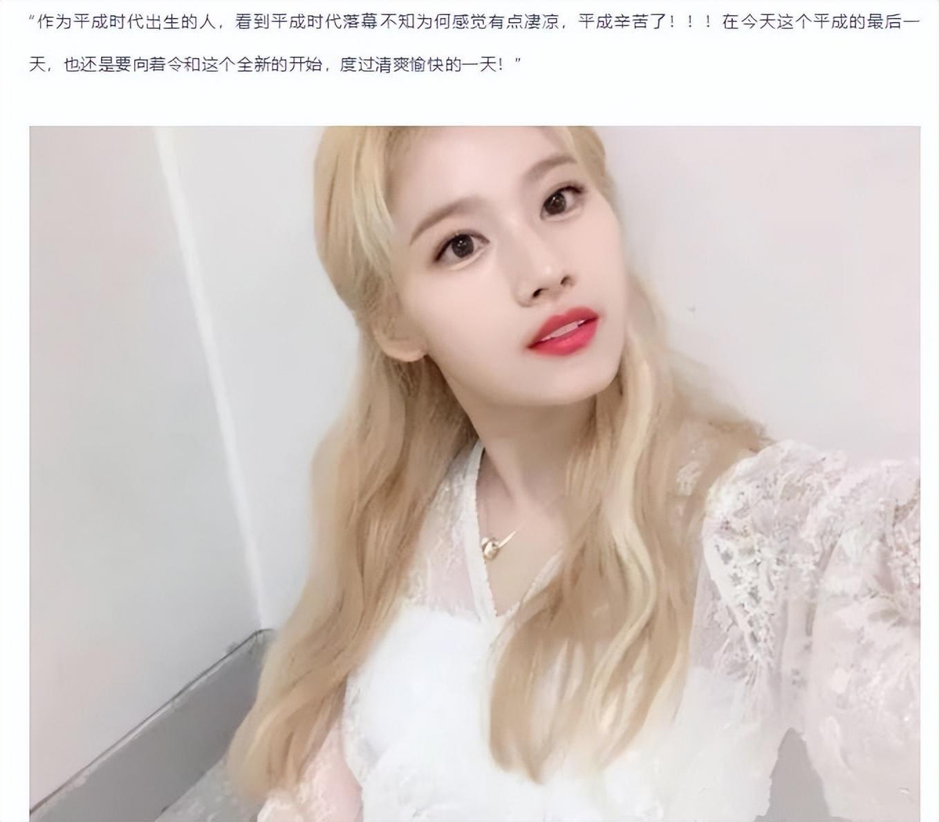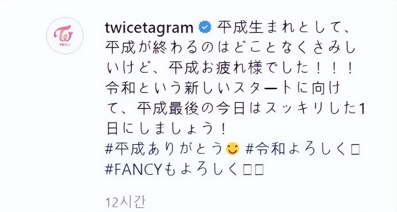 而TWICE的日籍成员凑崎纱夏正好是平成时代出生的,便有感而发地通过整个组合的官方账号,用日文发布了一条感叹时代结束的动态。