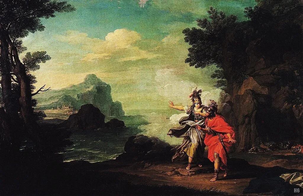 那天晚上,雅典娜伪装成特勒马科斯,为真正的王子找到了一艘船和船员。第二天早上,特勒马科斯召集了伊萨卡的公民集会,讨论该如何应对这些无礼的追求者,而这些人却对特勒马科斯嗤之以鼻。奥德修斯的儿子在雅典娜(现乔装成曼托)的陪同下,动身前往希腊大陆,前往奈斯特的家中。奈斯特是特洛伊最受尊敬的希腊战士,战后住在皮洛斯。