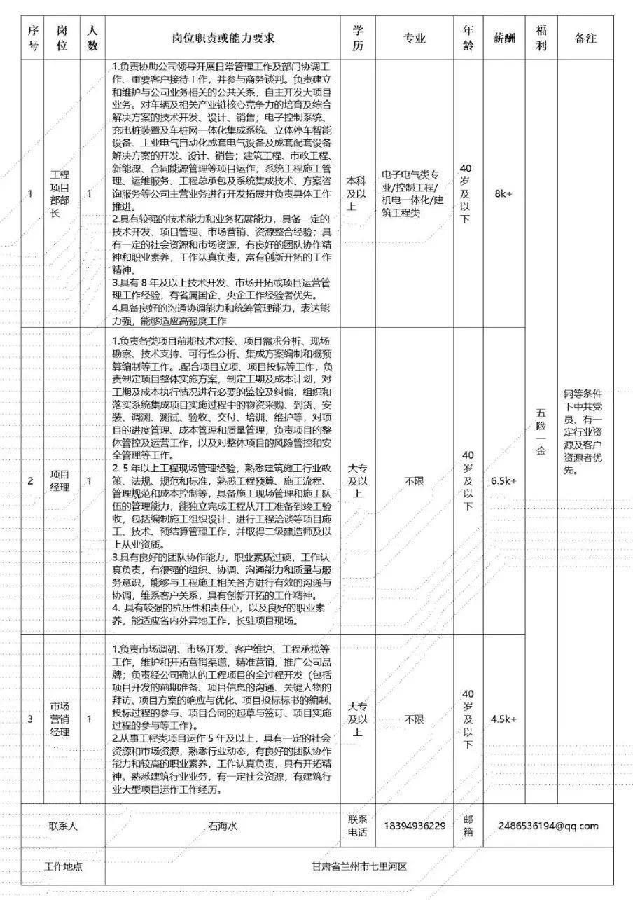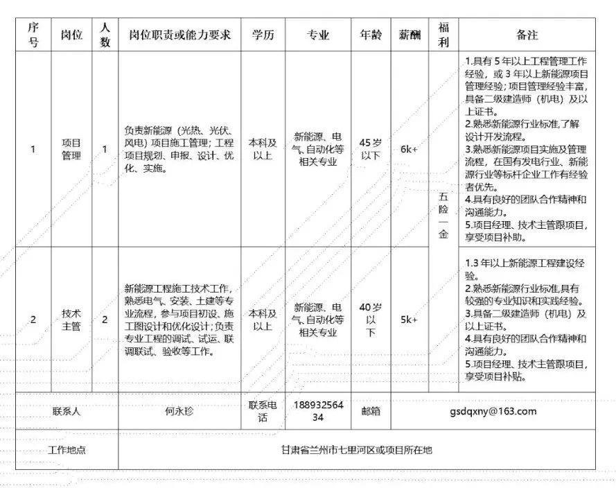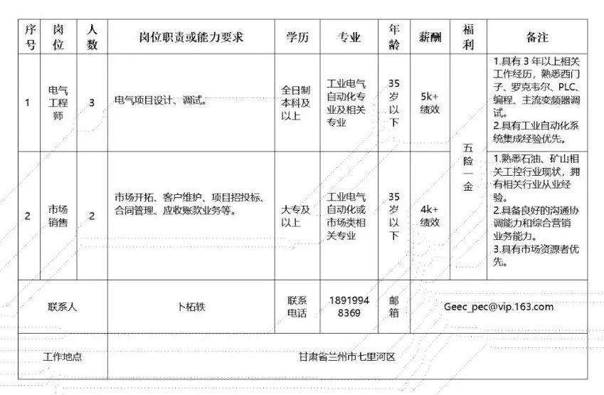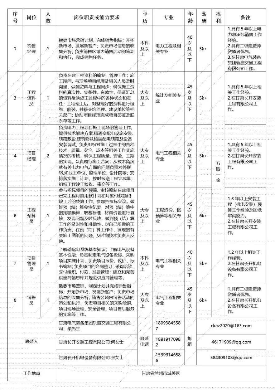 (二)甘肃电气装备集团有限公司所属工程公司招聘人员58人,具体为:
