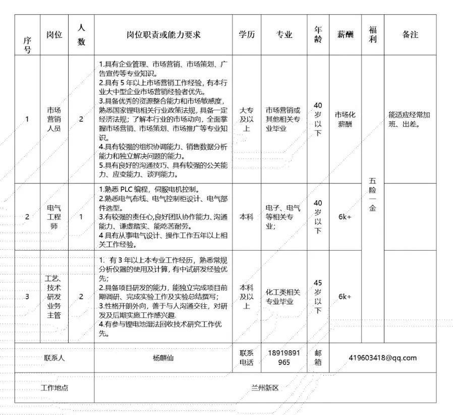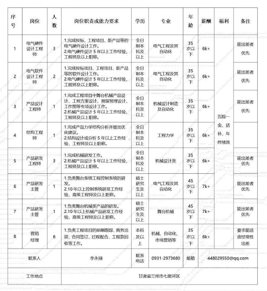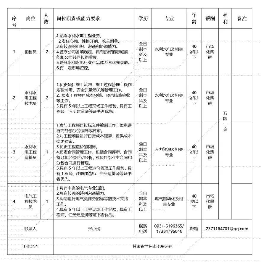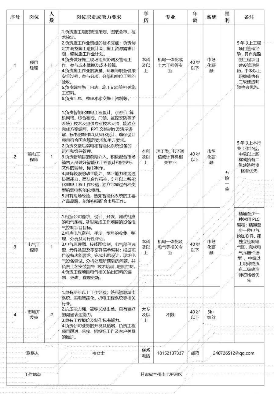 (二)甘肃电气装备集团有限公司所属工程公司招聘人员58人,具体为:
