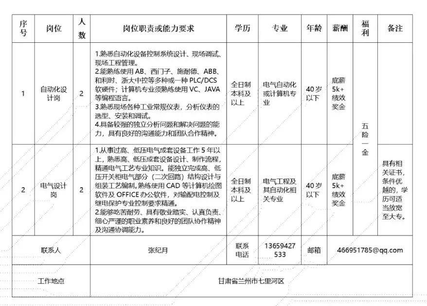 2.甘肃电气装备集团工业自动化工程有限公司(4人)