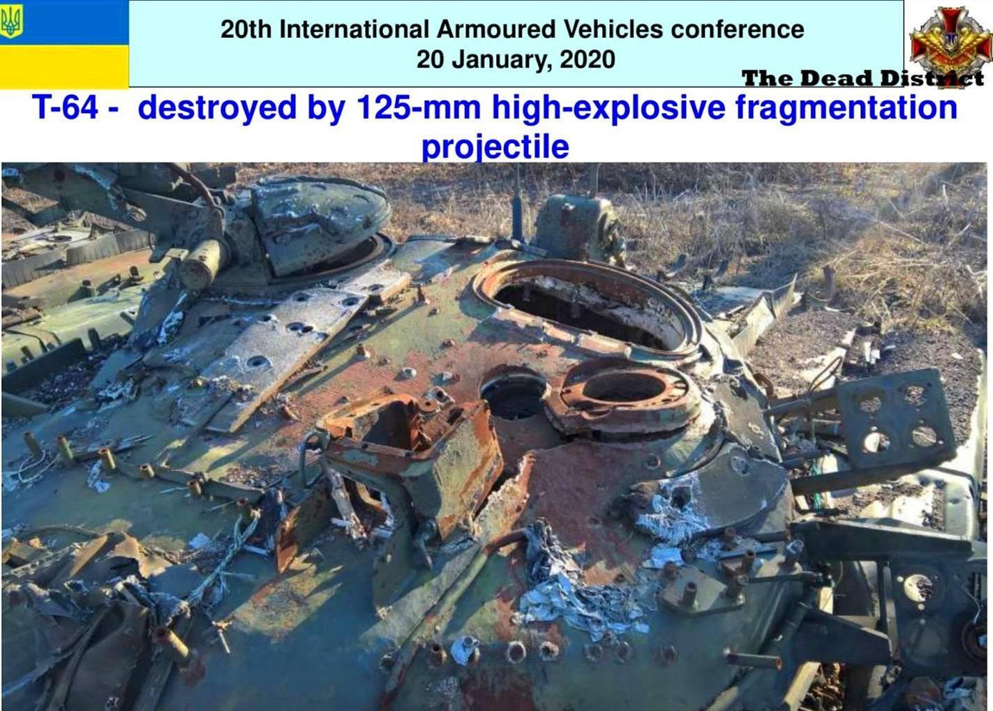 一辆被125毫米高爆榴弹击中的T-64坦克的炮塔