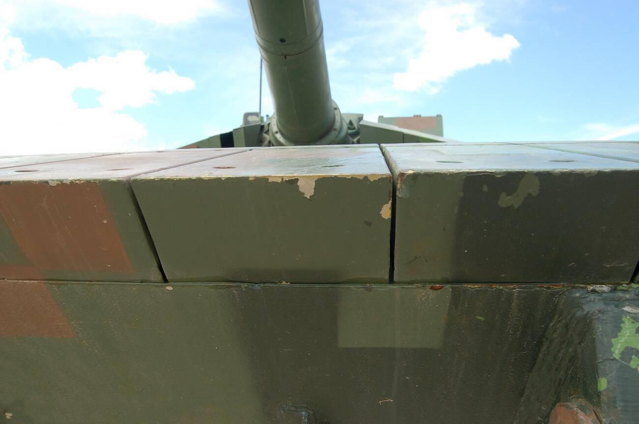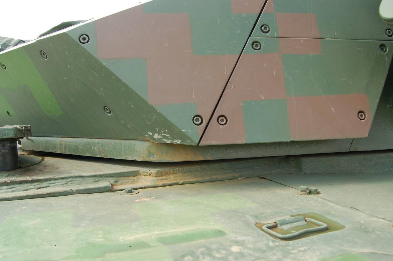 ▲可以清楚看到反应装甲与炮塔侧面之间的格栅装甲结构
