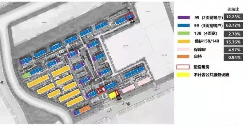 但其实,如果细看项目规划图,大家也能看出,华发决定采取高低配模式,主打99平3房,同时配有占比仅2.78%的138平4房,和10%左右的138和152平的叠加别墅。