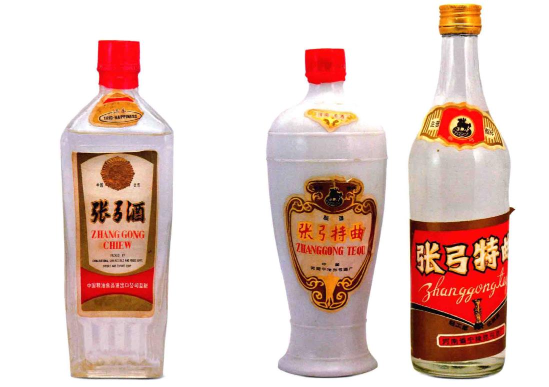 图中一:1988年“三乐牌”张弓酒,外销出口。图中二:80年代初“张弓牌”张弓特曲。图中三:1987年“张弓牌”张弓特曲。张弓特曲在张弓大曲酒的传统工艺基础上酿制而成,该酒具有张弓酒浓香的典型风格,多次获得河南省优质称号,1984年张弓特曲获得轻工部酒类质量大赛铜杯奖。