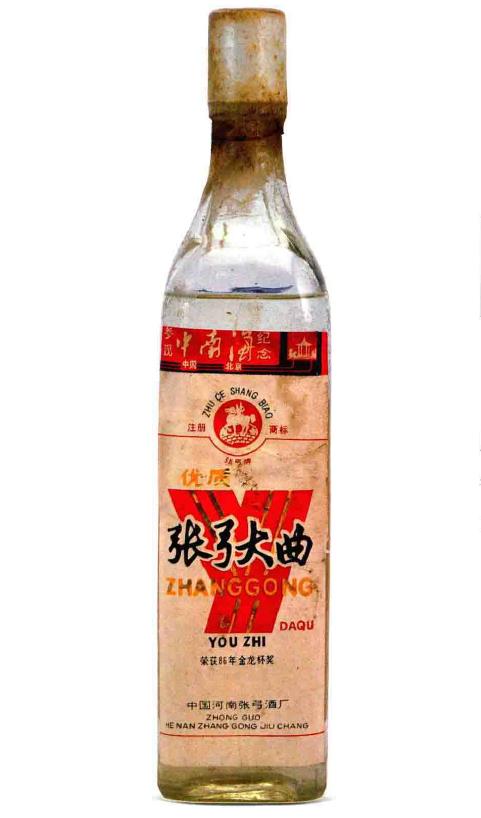 张弓牌张弓大曲于1979年、1984年、1988年连续三届全国评酒会获得中国优质奖称号,并于1986年获得河南省金龙杯奖,图中该酒为中南海纪念酒,为张弓大曲酒于1986年获得金龙杯奖后所产。