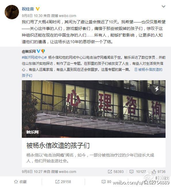 2016年9月11日,触乐网的祝佳音发了一篇文章《杨永信其实和游戏关联不大》,其中有一段是这么说的: