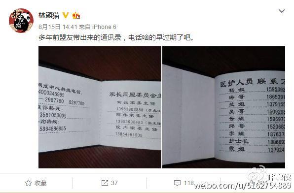 2016年8月15日,林熊猫在微博上公开了网戒中心全体医护人员的联系方式。