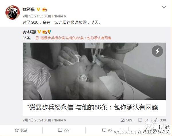 2016年9月7日,林熊猫发表“过了G20,会有一波详细的报道披露,明天。”的言论。