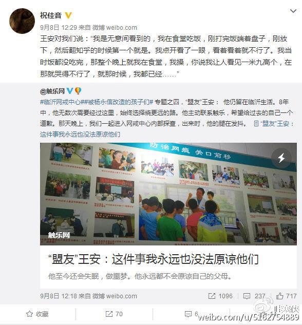 2016年9月8日,林琪雪感激“好友”祝佳音冒风险亲赴临沂。