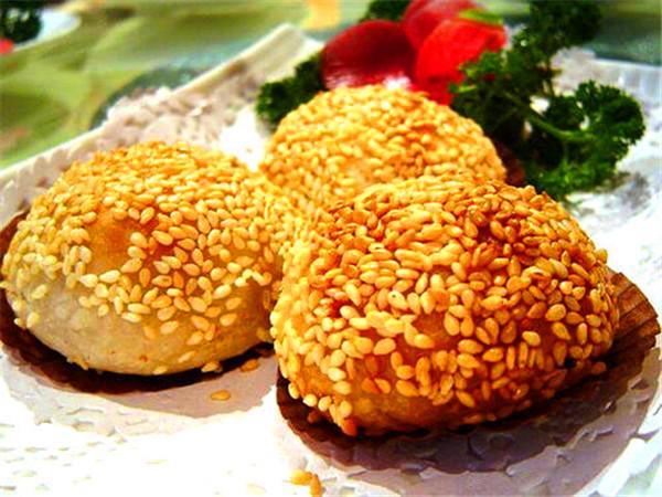 何家烧饼是保定地方名小吃,何家烧饼中的芝麻烧饼由于使用明火烤,所以烧饼皮上不时会出现烤得发了黑的芝麻。刚出锅的烧饼烫手,吃到嘴里烫舌头,因此要多等一会儿才能解馋。稍凉了一会儿,细细品嚼烧饼,芝麻粒粒是脆的,面层层是软的,正好是外焦里嫩,热气带着麻酱的香气就充满了你的口腔。