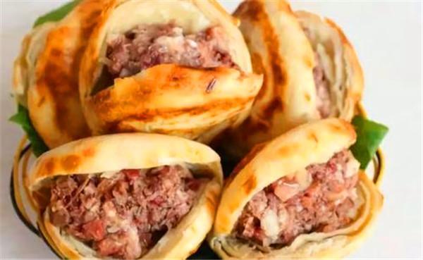 牛肉罩饼,河北保定特色小吃,始于清朝年间,相传嘉庆皇帝南巡路过保定,闻异香而振神, 问左右:“何物发此香?”左右答:“牛肉罩饼。”知府即将牛肉罩饼献上,嘉庆甚喜,吃后称赞:“色、香、味”三绝。从此,牛肉罩饼即成了历任知府招待各路宾客的美食。