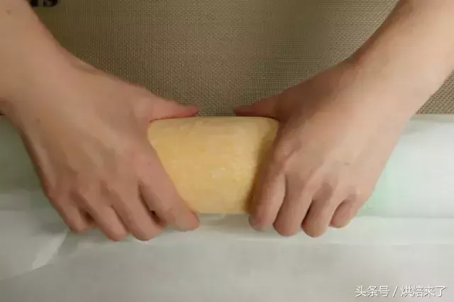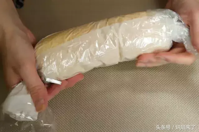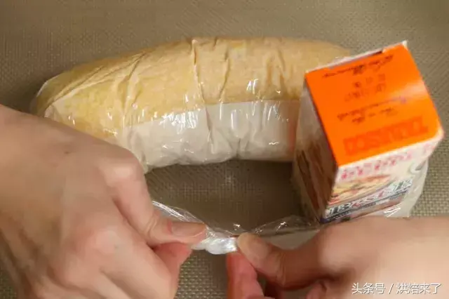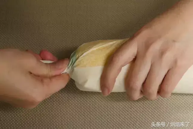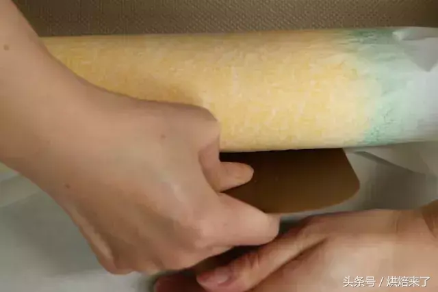 再将蛋糕卷起,结尾处注意尽量卷紧!