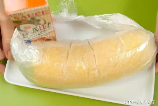 用烘焙纸包起来,两头拧紧,其中绿色更多的一头拧出一小截做香蕉的蒂把(反正我是这样说的~有可能是方言吧不造字有木有打错!总之你们懂的!),用保鲜膜叠成的长条系紧!