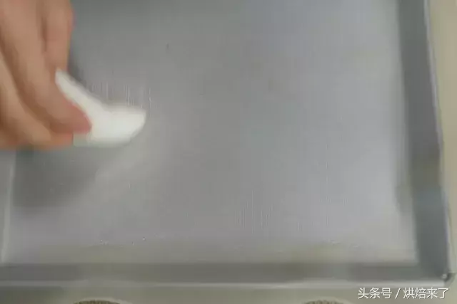 烤盘垫上硅胶垫,硅胶垫上喷薄薄一层食用油,并用纸巾抹匀。