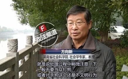 湖南省社会科学院社会学专家方向新教授认为,处理结果中要稍微注意一下,一般不要当众打狗,或者扑杀狗,这个还是不文明行为。此外,法律人士认为,“人肉”属于违法行为,受害者有上诉追责权利。