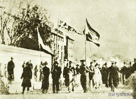 巴黎和会上中国外交失败的消息传来,北京大学学生于5月4日 高举校标,手执旗帜,从红楼出发,向天安门广场集