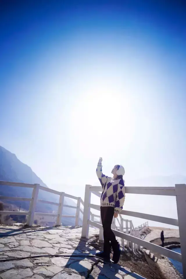 天气好的时候,对面的山显露出轮廓,蓝天白云下,秋千把你带到云间,连呼吸都变得很仙儿。
