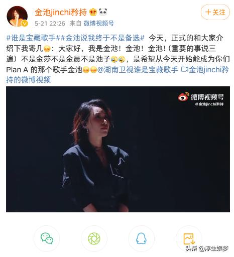 节目播出后,在个人社交平台中,金池难掩兴奋之情:不是金池不是金晨不是池子,是希望从今天开始能成为你们 Plan A的那个歌手金池。